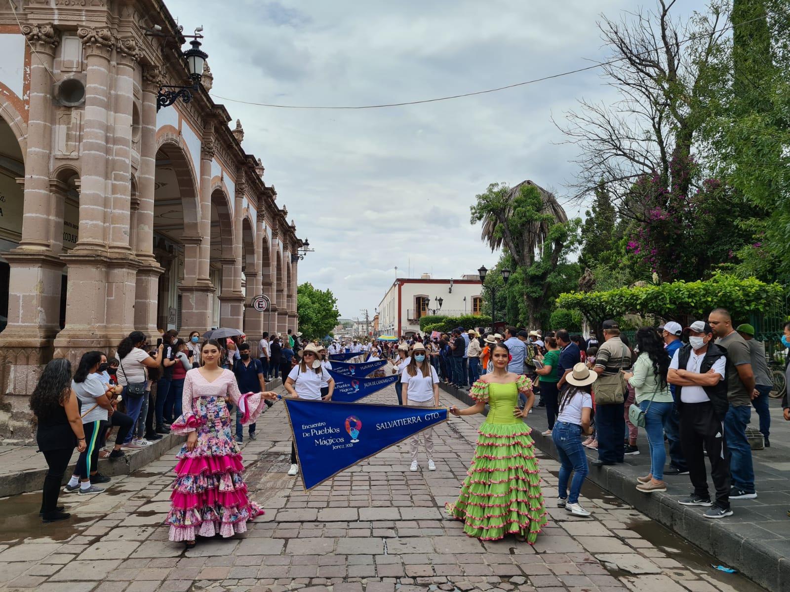 Entre las actividades que se llevaron a cabo esta el desfile de Pueblos Mágicos por las principales calles de la ciudad de Jerez, el contingente de Salvatierra fue encabezado por la reina de la ciudad 2021 Daniela Primera y la joven Arely Núñez quienes portaron orgullosamente el tradicional vestido de manolas.