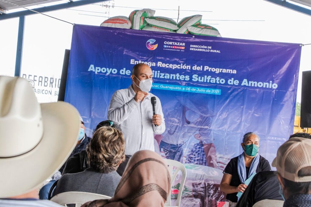A fin de incrementar y mejorar la producción en los cultivos de los productores de pequeña escala, el presidente municipal Ariel Corona realizó la entrega de fertilizantes, sulfato de amonio para ciudadanos de 17 comunidades.