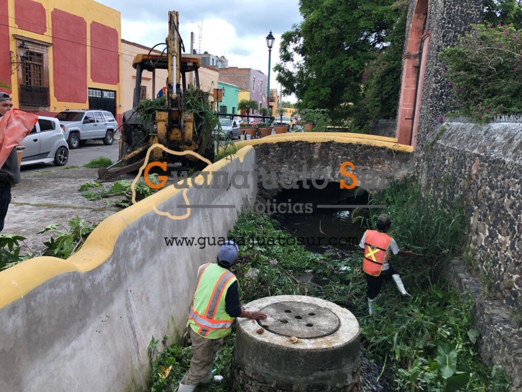 El área de Servicios Municipales en coordinación con Protección Civil y SMAPAS comenzaron con la limpieza del canal Gugurrones, el cual se encontraba invadido por la hierba y basura acumulada en algunos puntos.
