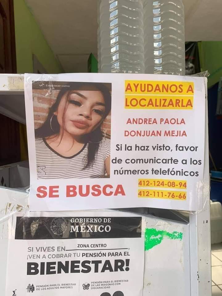 De acuerdo a las imágenes mostradas a través de redes sociales, así familiares pedían el apoyo a la ciudadanía para dar con el paradero de la jovencita Andrea Paola Donjuán Mejía de tan sólo 14 años de edad quien desapareció el pasado 3 de julio en el municipio de Comonfort.