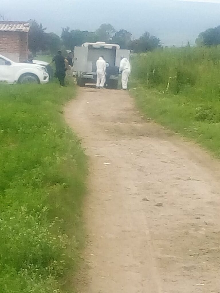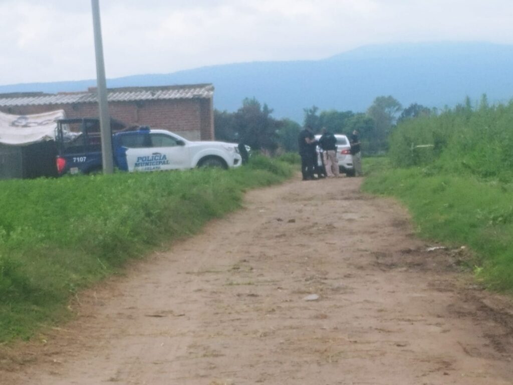 Elementos municipales fueron los primeros respondientes quienes localizaron a un varón amarrado con impactos de bala y huellas de violencia entre las empresas Acros y Transportes tres guerras, justo en zona parcelaria.