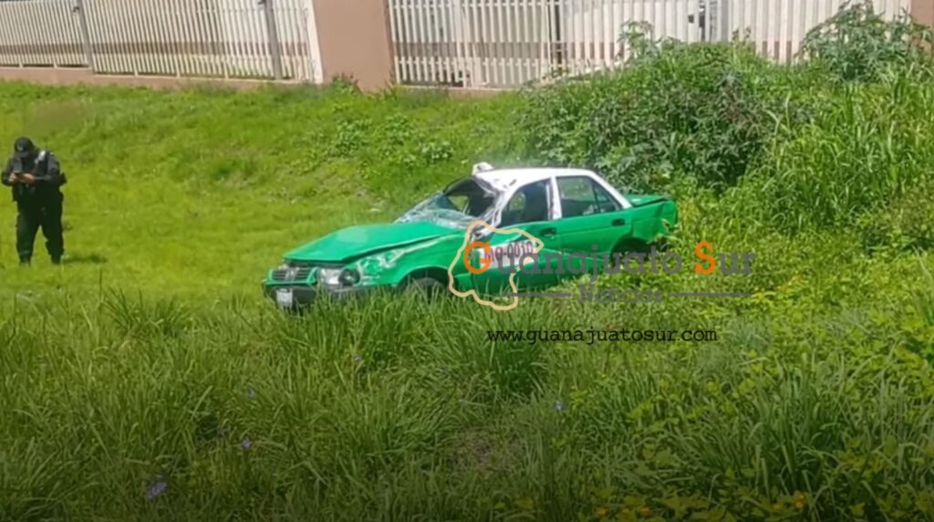 Los hechos ocurrieron sobre la carretera Moroleon-Piñícuaro, a la altura del Instituto Humanista Iberoamericano donde un taxista que manejaba un automóvil Tsuru con el número MO-0010 resultara lesionado.