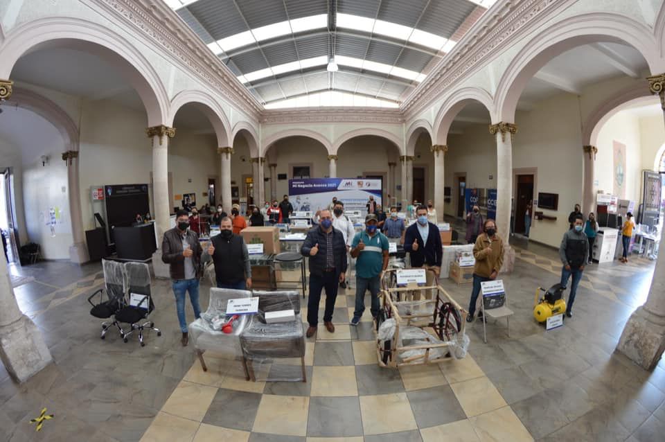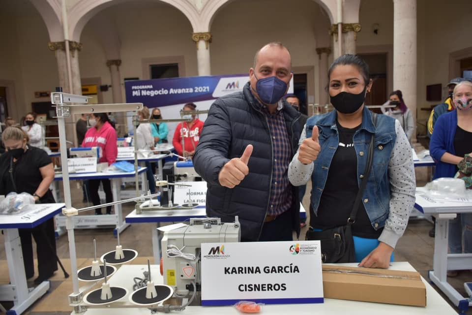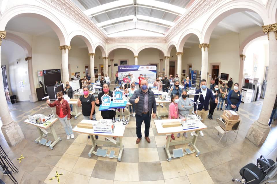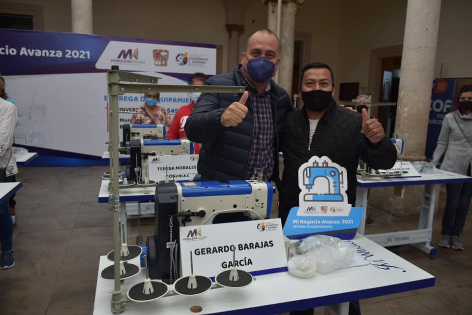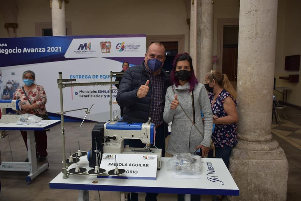 Se beneficiaron a 47 familias con 19 máquinas collareta, 8 overlock, 7 máquinas rectas, 2 plotter, así como equipo de oficina, cafetería, cocina económica, publicidad, peluquería y para 2 autolavados.