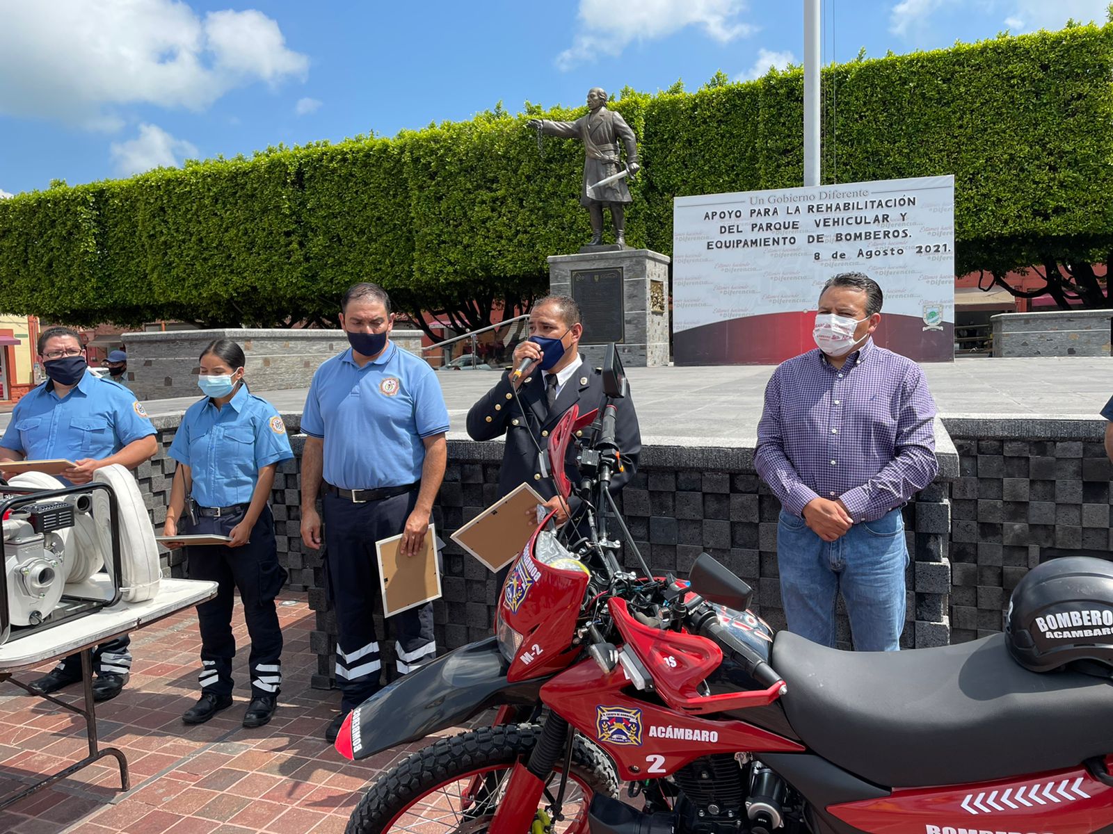 A través de un acto protocolario se llevó el Gobierno Municipal de Acámbaro llevó a cabo la entrega de apoyos al Cuerpo de Bomberos del municipio, con respecto a la rehabilitación de algunas unidades móviles y equipamiento a elementos de esta corporación de emergencia.