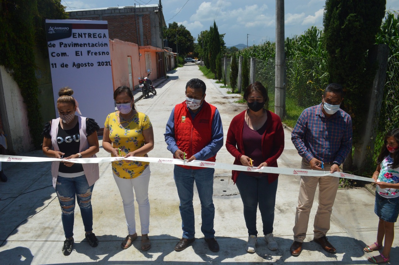 El munícipe acambarense, acompañado por integrantes del Ayuntamiento, visitó la comunidad de El Fresno donde fue pavimentada una de las calles de este lugar; así como la comunidad de Monte Prieto, donde de igual manera fue entregada una calle pavimentada, y asistió a la Col. Luis Echeverría, en la cabecera municipal para hacer entrega de otra obra de pavimentación.