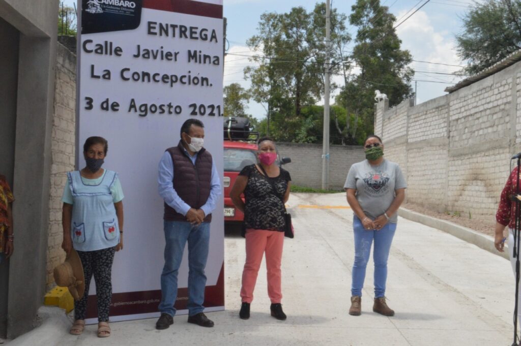 Inicialmente las autoridades visitaron la comunidad de La Concepción para realizar la entrega oficial de la calle Javier Mina, pavimentación que requirió la unión de esfuerzos entre sociedad y gobierno, siendo hoy una realidad.