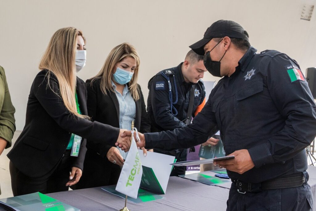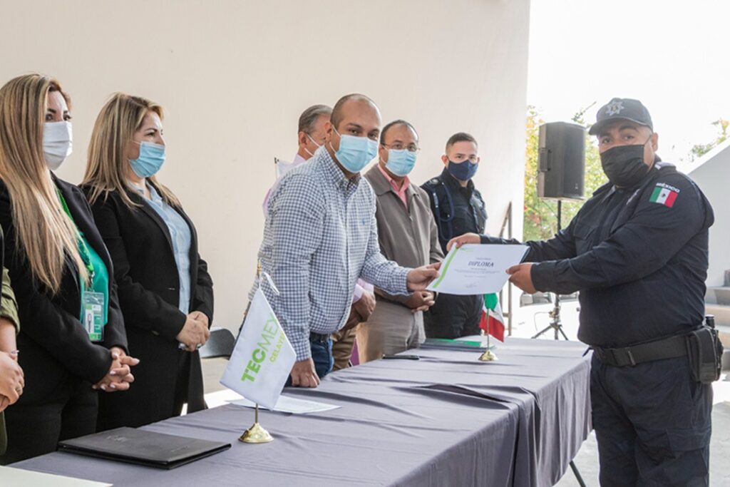 En el auditorio del Centro Cultual 30 elementos del Sistema de Seguridad Pública recibieron su certificado de preparatoria a través TecMex Celayense, de manos del presidente municipal Ariel Corona y autoridades municipales.