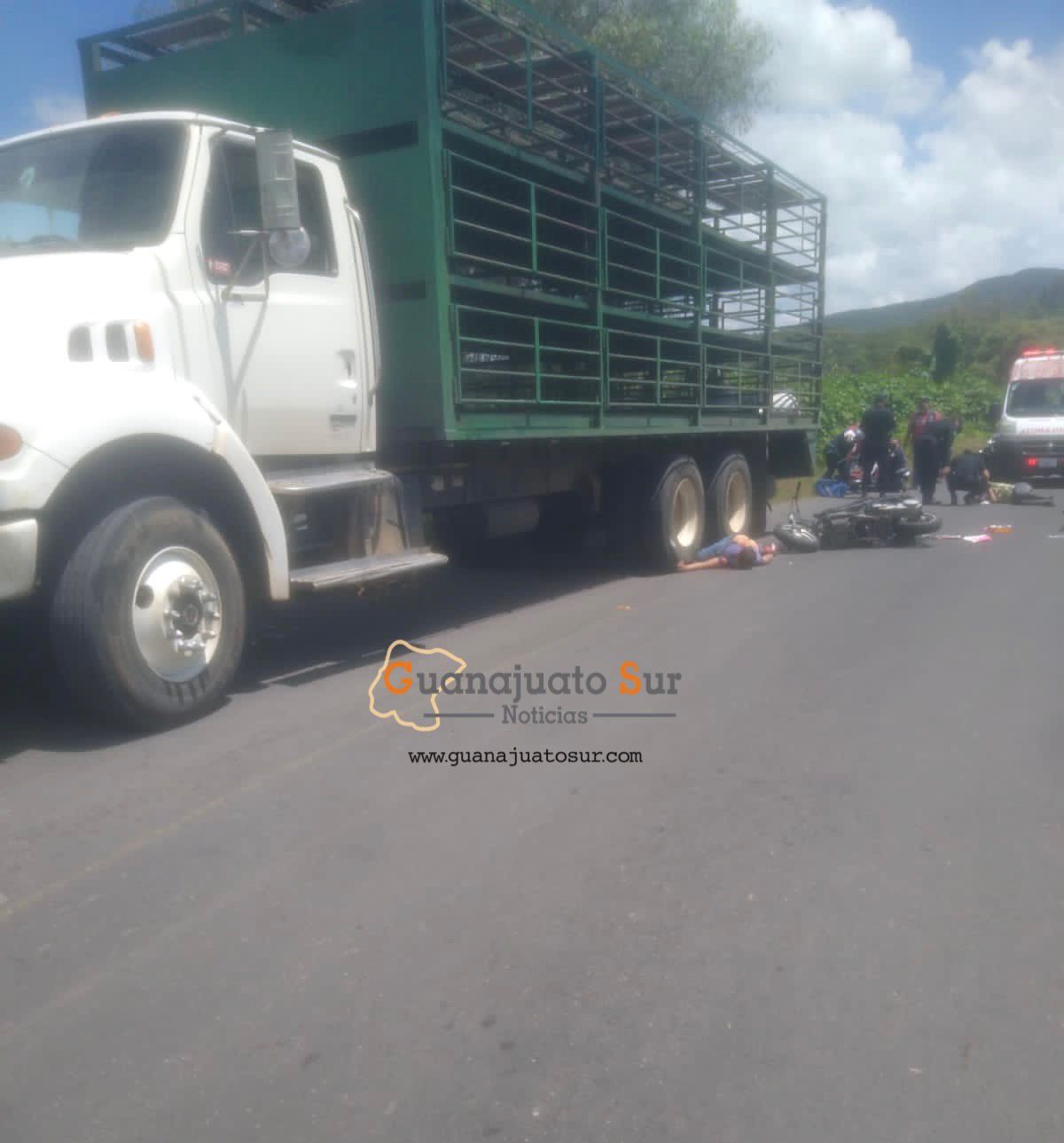 Lo anterior después de que un camión de carga pesada impactara la motocicleta en la que viajaban. Los hechos se registraron alrededor de las 3:00 de la tarde en la calle Paseo de los Héroes, vialidad del arroyo que da camino a la comunidad de las peñitas en el municipio de Uriangato.