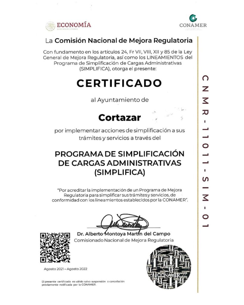 El gobierno municipal de Cortázar 2018-2021 logró la certificación del programa “Simplificación de Cargas Administrativas” lo que permitirá darle una mejor atención a la población y reducir los tiempos que le lleva realizar un trámite.