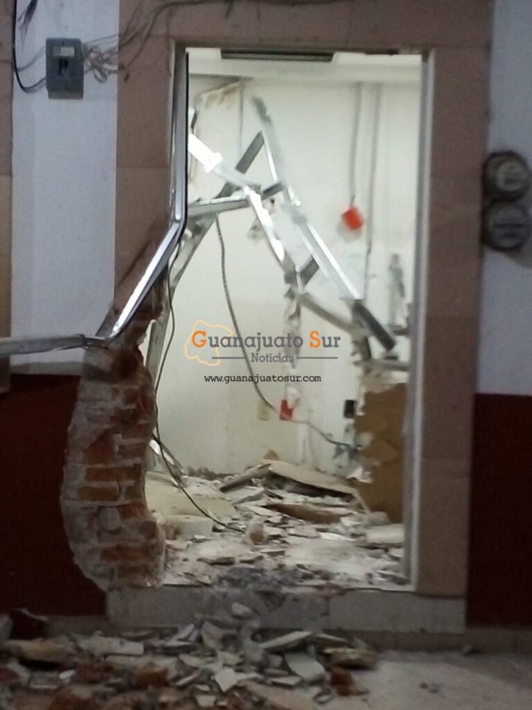 Vecinos informaron que eran más de 20 personas armadas las que se colocaron en varios puntos del Jardín mientras que otras personas con ayuda de una camioneta y mazos rompieron una parte de una pared para poder retirar los cajeros automáticos, asimismo en el lugar destrozaron los cajeros para retirarles las cajas que resguardan el dinero. Dejaron incluso la herramienta que usaron para retirar dichos vehículos, así como restos de los cajeros en el jardín de Santiago Maravatío.