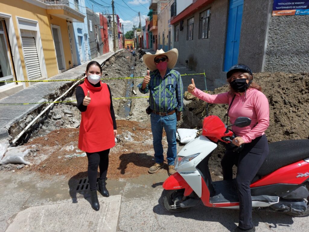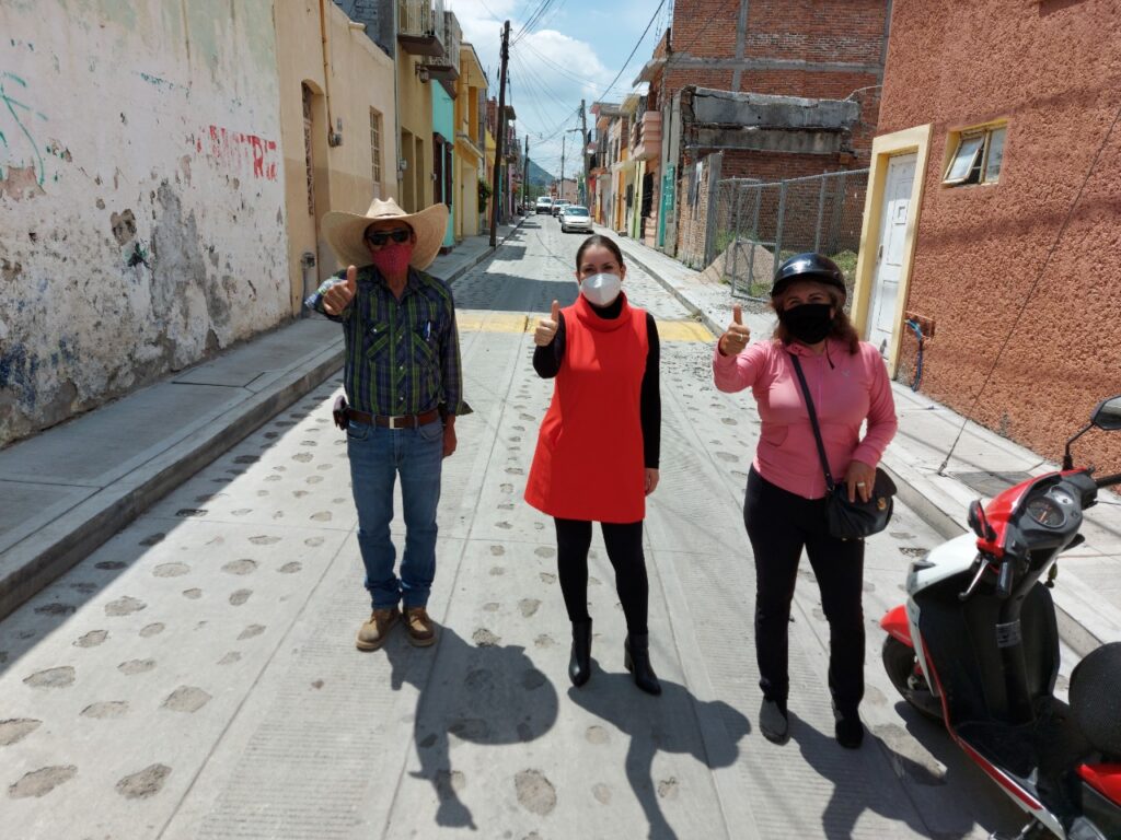 Actualmente ya están terminadas dos etapas de rehabilitación de la calle en donde se invirtieron 3 millones 048 mil 927 pesos, pavimentándose a base de piedra ahogada 1124 metros cuadrados, se realizaron 504 metros lineales de guarniciones, 470 metros cuadrados de banqueta, se mejoraron las líneas de agua potable y drenaje, se instalaron 12 pozos de visita, se conectaron 65 tomas domiciliarias y 80 descargas sanitarias.