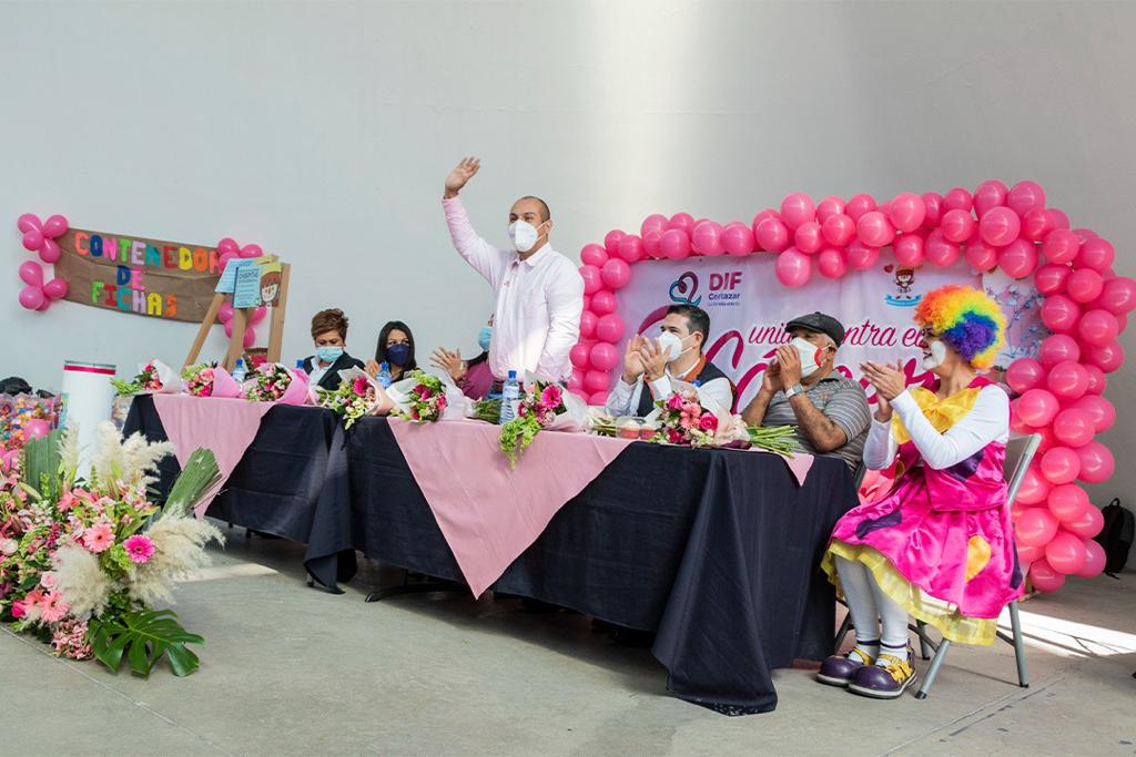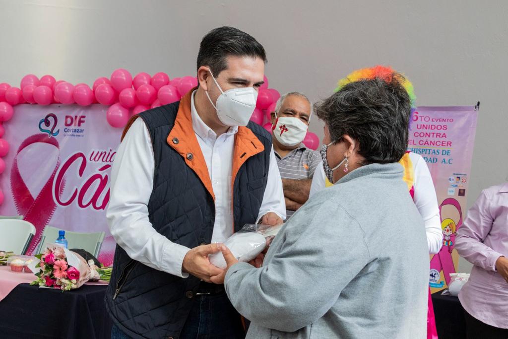 En su mensaje el edil reconoció el trabajo de las personas que realizan alguna labor de voluntariado al realizar recolección de trenzas para pelucas oncológicas, de tapitas para acompañamiento y la entrega de despensas, ya que actualmente el recurso para la gente que sufre esta enfermedad se ha reducido.