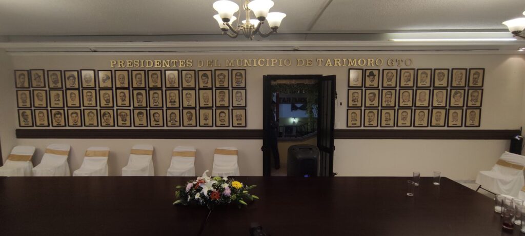 Realizaron remodelación del Salón de Cabildos de Tarimoro donde se develaron obras fotográficas, pictóricas y esculturales que reflejan la esencia de Tarimoro, así como un mural con 64 fotografías de los exmandatarios que han dirigido las riendas del municipio durante 123 años.