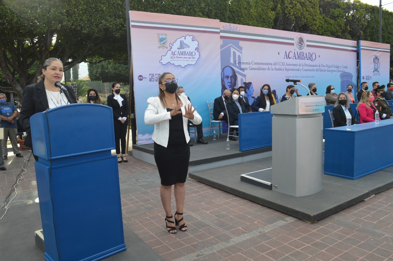 En su mensaje, la Alcaldesa, Lic. Claudia Silva Campos, agradeció la presencia de todos los asistentes a este evento que llena de orgullo a todos los acambarenses; dijo “agradezco a todos los presentes, pero sobre todo doy gracias al pueblo de Acámbaro, por permitirme presidir este acto de aniversario de la constitución del Ejército Insurgente y la proclamación de Don Miguel Hidalgo y Costilla como Generalísimo de la América Septentrional.