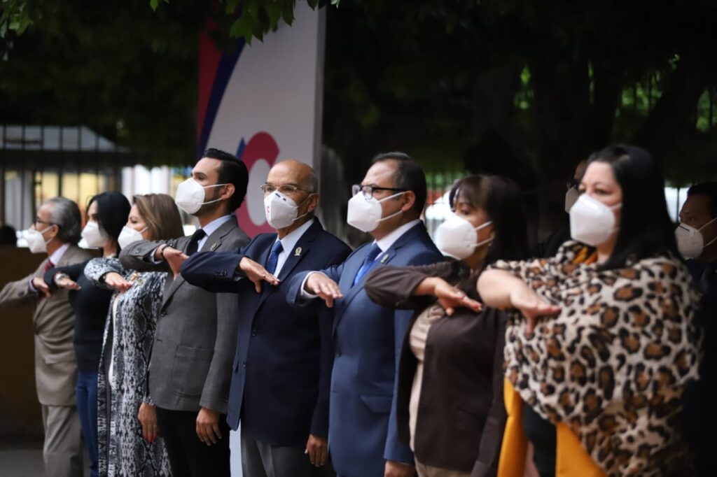 En el acto cívico participaron el síndico Carlos Alberto Ruíz; las regidoras María Cristina Hermosillo, María Isabel Herrejón, María de San Juan Espinoza, Rosalinda Díaz y Blanca Elena González; la oficial mayor Eroka Samantha Cruz; el director de Desarrollo Económico, Eduardo Knapp; el director de Obras Públicas, Marco Antonio Hernández; el director de Desarrollo Urbano, Jorge Granados, así como la directora de la escuela primaria “Emeteria Valencia”, Adriana Sauza.