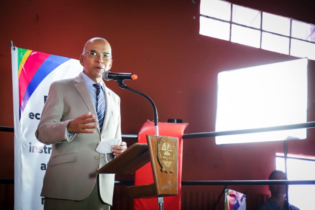 El material deportivo que se les entregó a cada uno de los cuatro gimnasios consta de los siguientes accesorios: tres costales de box, cuatro peras loca, cuatro peras fija, tres pares de manoplas de velocidad, dos petos entrenador, tres pares de guantes de 14 y 16 onzas, seis caretas, un domi y tres pares de guantes de entrenador.