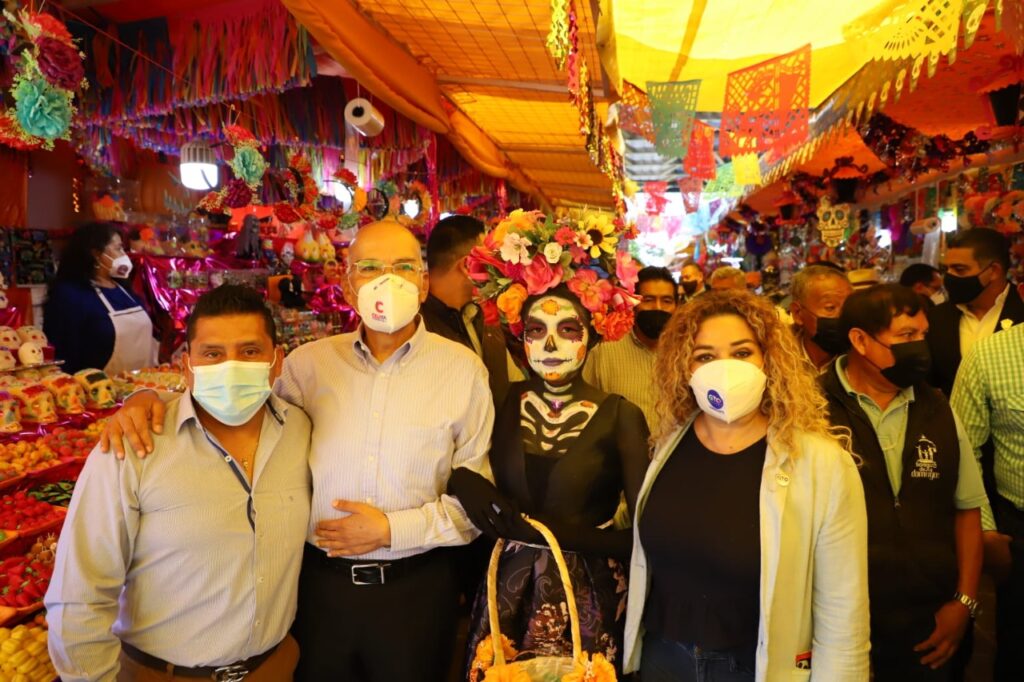 El presidente municipal, Javier Mendoza Márquez, participó en la inauguración de la Feria del Alfeñique, donde hizo un llamado a preservar nuestras tradiciones como es la festividad del Día de Muertos, pero hacerlo de una manera responsable para cuidar la salud ante la pandemia que sigue presente.