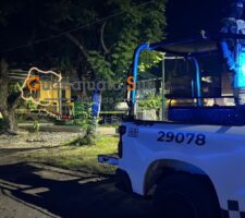 Acudieron como primeros respondientes elementos de Seguridad Pública y Tránsito Municipal para corroborar el hecho encontrando una camioneta de color verde impactada en la reja de una casa, a un costado de la carretera, y en su interior a un joven herido.