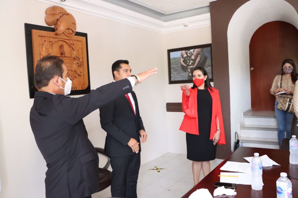 Más tarde en la primera Sesión Ordinaria fueron nombrados Cynthia Fuentes Rodríguez como tesorero municipal y el Secretario de Ayuntamiento Jorge Rodríguez Aguilar. Destacó también la entrega de los paquetes de la comisión de entrega recepción, así como varias intervenciones de la regidora del PT, Adriana Bravo Maldonado quien estuvo en contra de todos los votos que tocaron en la orden del día.