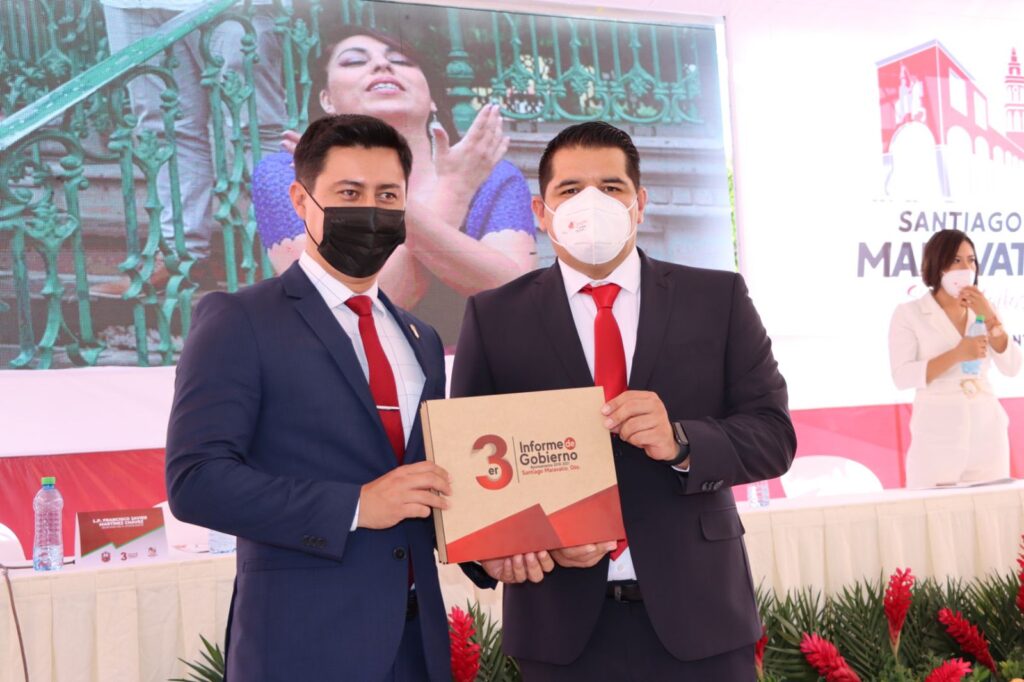 En compañía de miembros del H. Ayuntamiento e invitados especiales el Alcalde de Santiago Maravatío rindió su tercer informe de gobierno, dijo que Santiago Maravatío es un municipio libre de deuda, destacando que en los tres años de gobierno no se solicitaron adelantos de participaciones, dijo que el presupuesto para los próximos meses está listo y se podrá operar de forma normal, señalando que están listos para cerrar la administración como ninguna otra.
