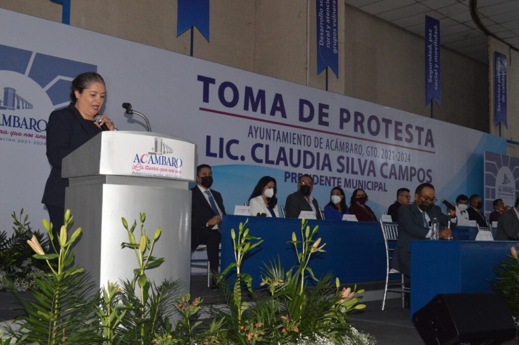 Bajo el lema de hacer de Acámbaro la tierra que una a todos los acambarenses, tomó protesta la Lic. Claudia Silva Campos, en sesión solemne de Ayuntamiento, como Presidente Municipal para el periodo 2021-2024.