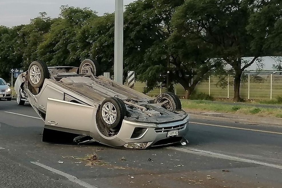 El suceso fue la mañana de este miércoles justo a la altura de INIFAP donde autoridades localizaron un auto sedán color blanco con las llantas hacía arriba luego del reporte al 911 de un accidente vehicular.