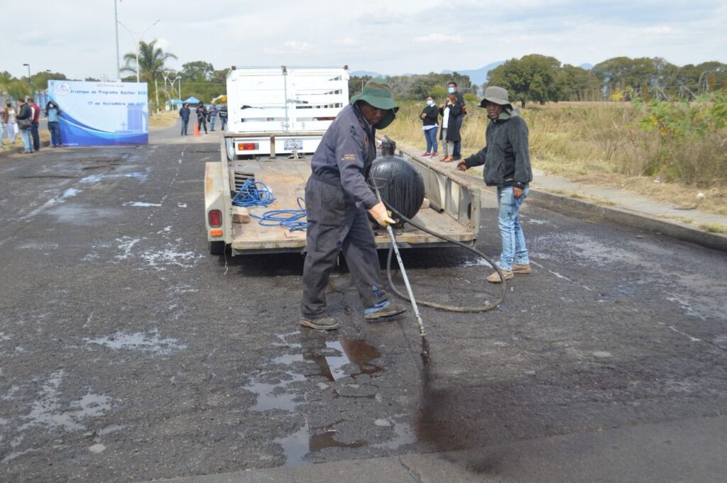 Posteriormente las autoridades se trasladaron al acceso que conduce al Hospital Regional de Acámbaro, para continuar con la aplicación de este programa, así como en diferentes zonas del municipio donde se han detectado un deterioro de pavimento.