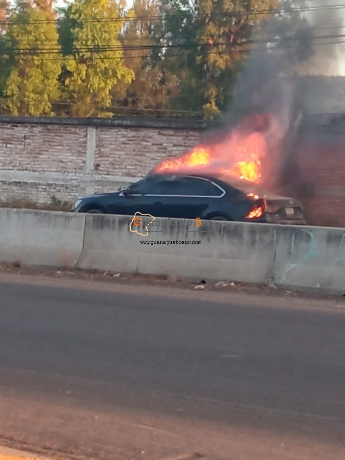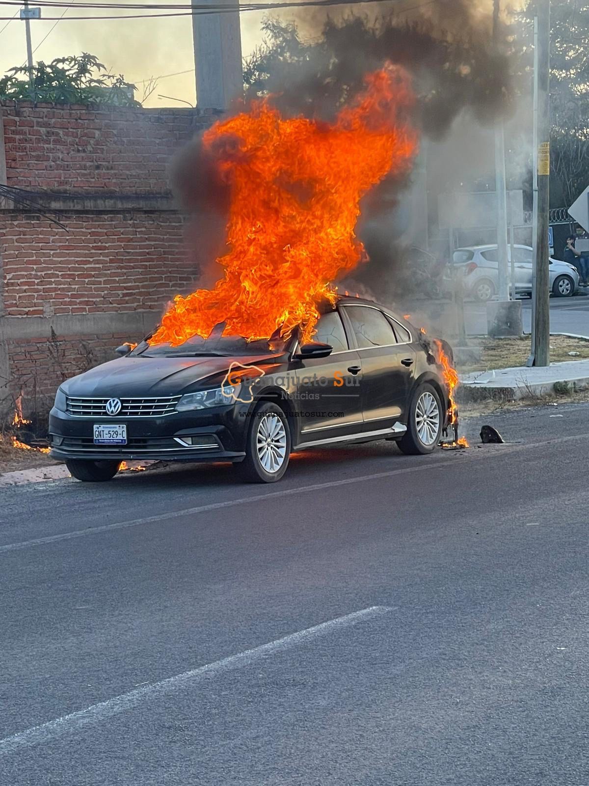 Por lo anterior elementos municipales y personal de Bomberos se presentaron a un costado del Panteón Municipal dónde localizaron un auto tipo Sedan marca Volkswagen color oscuro envuelto en llamas.