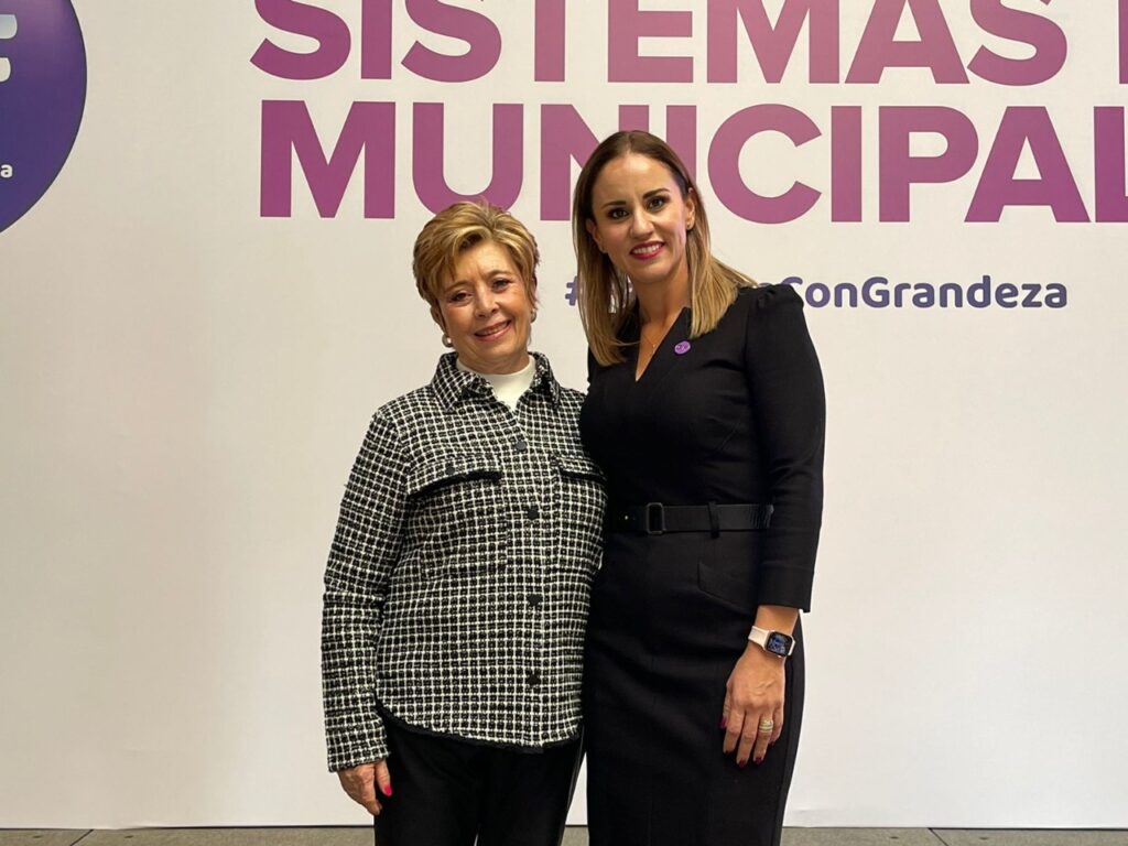 Momentos antes del arranque del primer encuentro de los Sistemas para el Desarrollo Integral de las familias, Rosa María Suárez de Mendoza y María del Carmen Núñez Mares se tomaron la fotografía oficial por parte de DIF estatal.