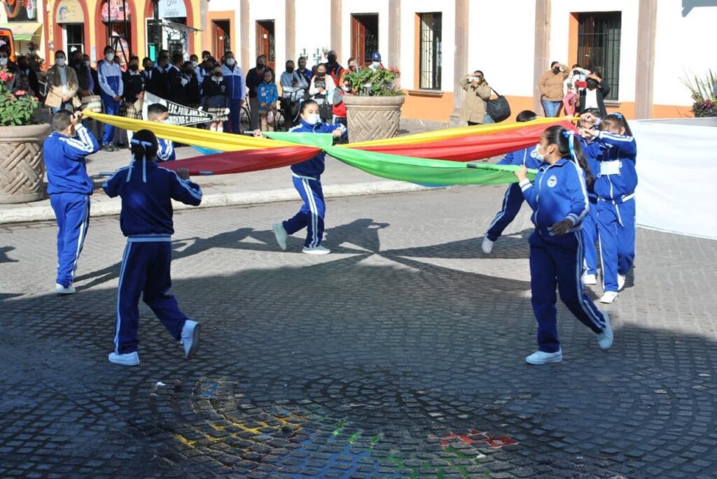 El evento se realizó en la explanada del jardín principal donde tanto las instituciones educativas como civiles, se dieron cita para llevar a cabo, primeramente, el acto cívico, el cual estuvo dirigido por la escuela primaria, Enrique C. Rebsamen, posteriormente las instituciones educativas, tuvieron a bien participar con diferentes estampas culturales y recreativas como tablas rítmicas, poesías y suertes charras, las cuales deleitaron y alegraron a los presentes.