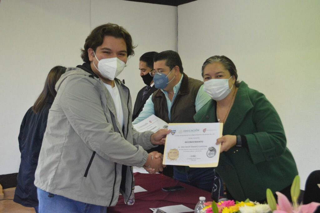 Se hizo entrega a profesores y personal administrativo un reconocimiento por 40, 30 y 35 años de servicio, además a los alumnos con mejores promedios del ciclo escolar 2020-2021 en sus diferentes áreas.