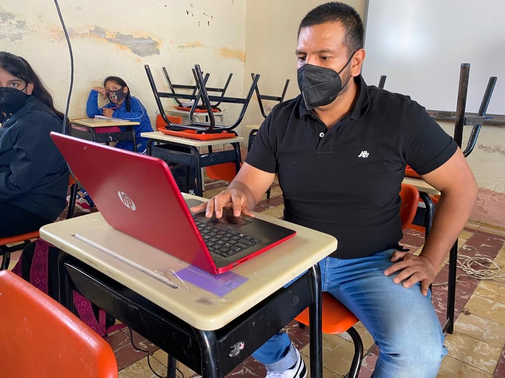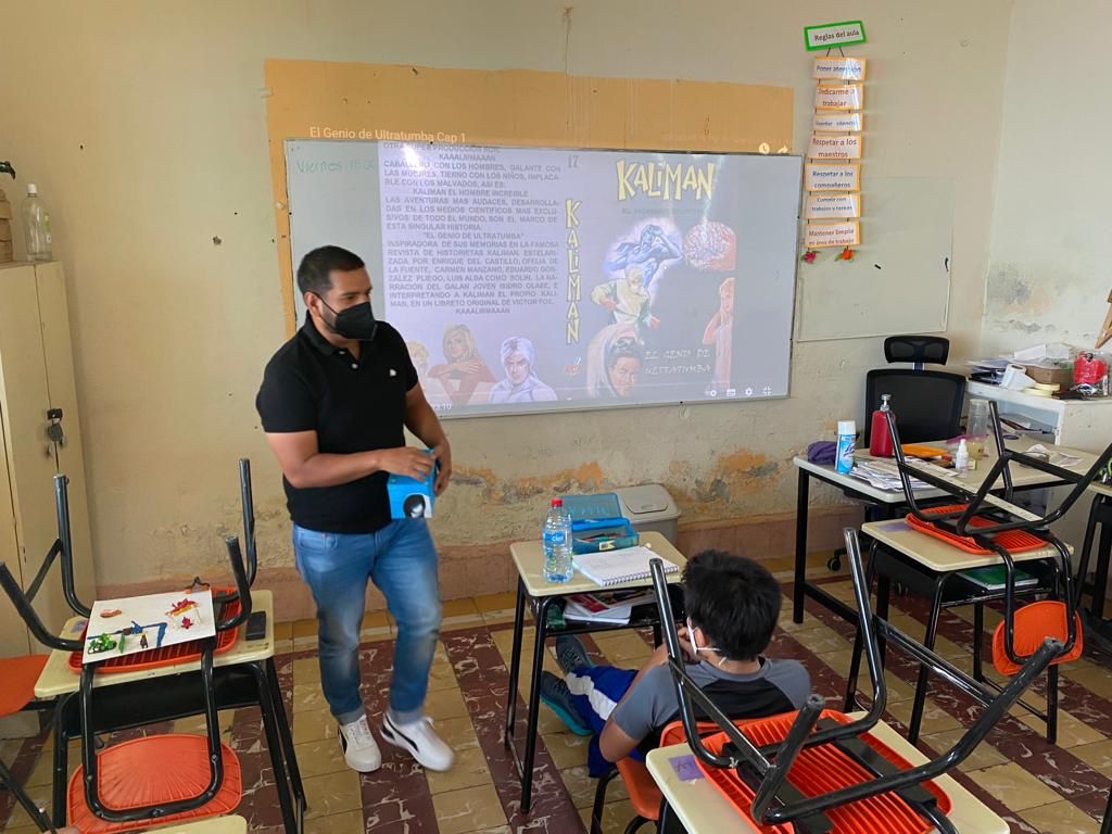 Antonio Ayala Fuentes, docente de sexto grado en la escuela Leona Vicario del municipio de Salvatierra, utiliza la estrategia de innovar en sus clases, a través de la base tecnológica con juegos didácticos e interactivos, para que la clase tenga una dinámica diferente y adecuar las actividades de una manera lúdica.