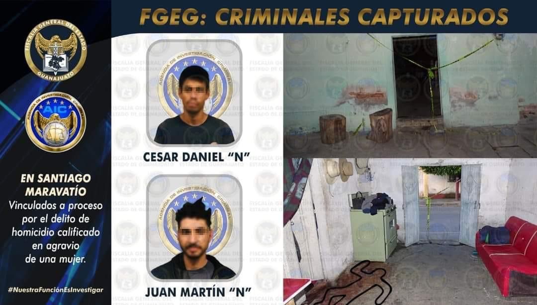Al cerrar su conducta criminal, los agresores abandonaron la casa y se dirigieron a la camioneta en la que llegaron, para darse a la fuga, dejando atrás una víctima. Al continuar la investigación por este homicidio, la Fiscalía General del Estado logró ubicar a los dos intervinientes en el asesinato de la mujer, y cumplimentó orden de captura, para llevarlos a audiencia donde un Agente del Ministerio Público les formuló cargos por homicidio calificado (premeditación y ventaja), en audiencia que se desarrolló por medio de videoconferencia.