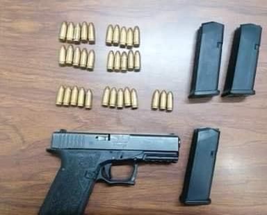 Cabe señalar que la persona se encontraba en una motocicleta tipo turismo color Negra con Rojo sin placas de circulación, al revisarlo se le encontró en una mochila una pistola color negra marca Glock modelo 19 calibre .9 mm. con 3 cargadores y 33 cartuchos útiles del mismo calibre, por lo que se aseguró a quien dijo llamarse Renato “N” de 26 años de edad.