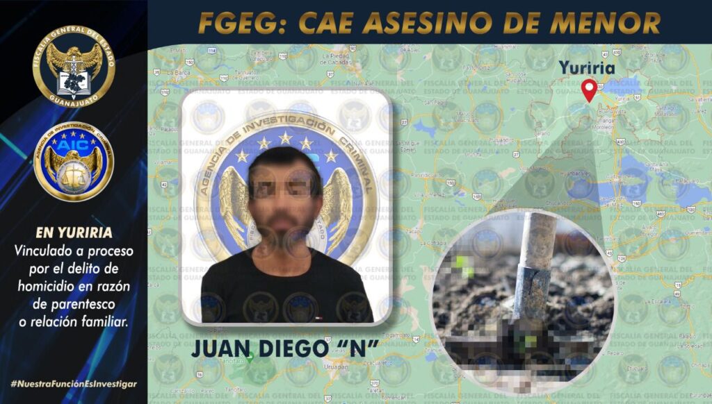 El homicidio de un menor de dos años develó al Agente del Ministerio Público el patrón de abusos y maltrato de que era objeto por su progenitor, quien argumentó siempre que el niño “no era de él”. El torvo sujeto de extraña conducta fue detenido e imputado por la FGEG por el delito de homicidio en razón de parentesco o relación familiar, previsto y sancionado por el Código Penal del Estado de Guanajuato.
