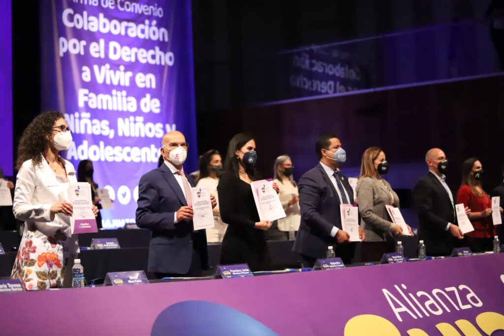 La firma del convenio “Alianza GUIA” se realizó en el marco de la conmemoración por el 32 Aniversario de la Convención de los Derechos de los Niños, con la presencia de alcaldes y alcaldesas, presidentas de sistemas DIF municipales y representantes de instituciones de atención a menores vulnerables.