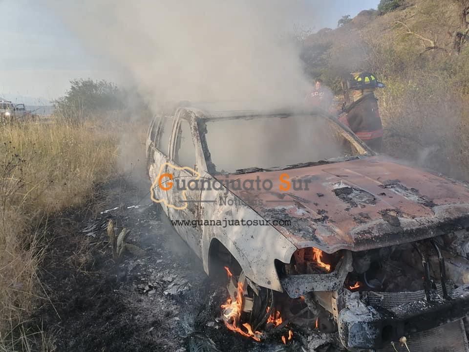 Incendian camioneta en la carretera Acámbaro – Irámuco, a la altura de la comunidad de Andocutín, no se reportan personas lesionadas.