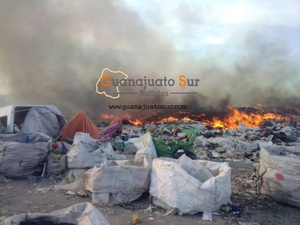 Alrededor de las 18:00 horas del pasado domingo se registró un fuerte incendio en el relleno Sanitario de Salvatierra localizado en el camino que comunica cabecera municipal de Salvatierra con la comunidad de Ojo de Agua de Ballesteros.
