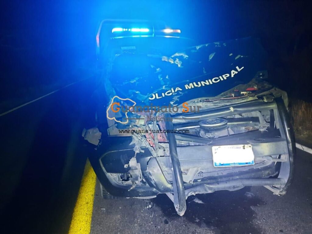 Una patrulla de Seguridad Pública del municipio de Apaseo el Alto atropello a una vaca, en la carretera Acámbaro – Tarimoro, a la altura de la comunidad de Parácuaro.