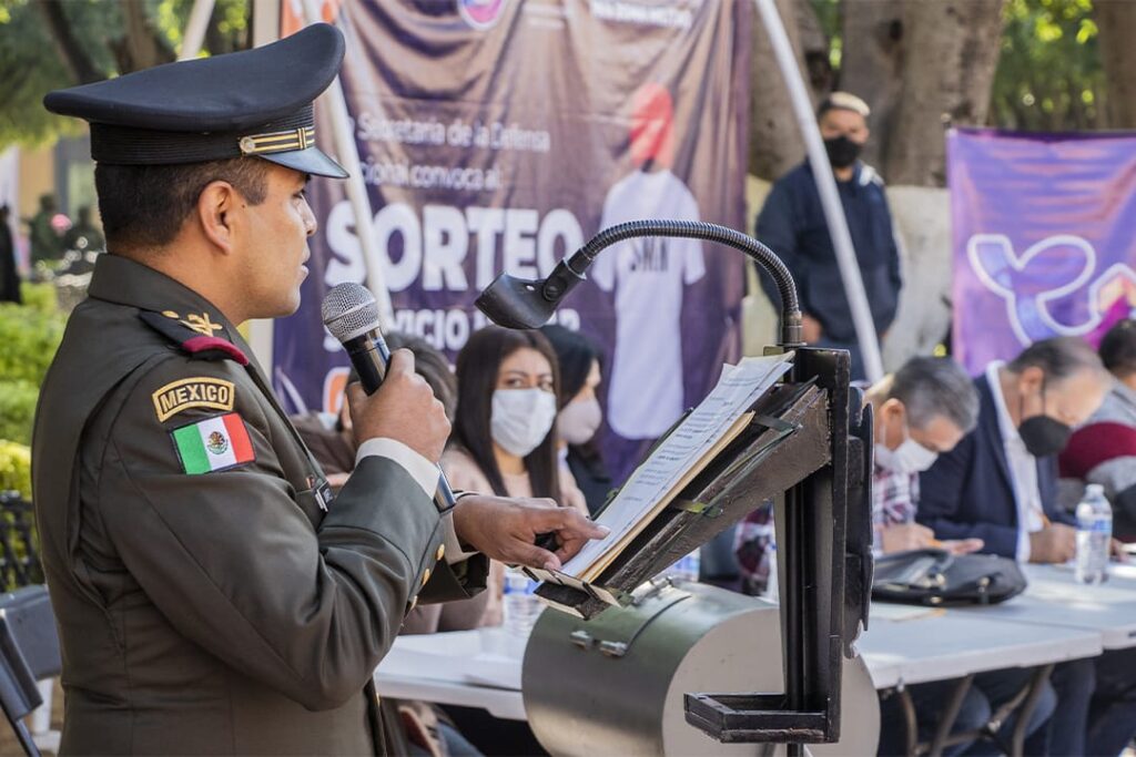 El teniente de Artillería Perteneciente al 4° grupo de Cañones Rodolfo Juárez Flores leyó las instrucciones, de acuerdo a las bases legales del instructivo para el Sorteo del Servicio Militar Nacional.