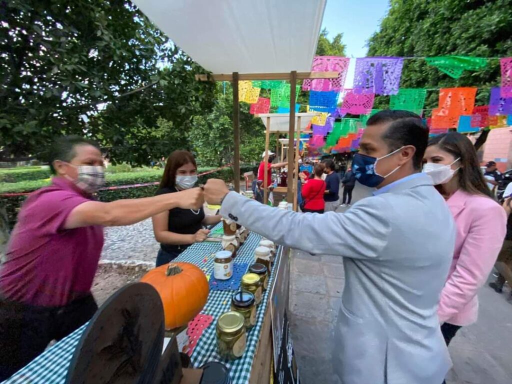 El Presidente Municipal Germán Cervantes Vega, la Presidente del DIF Andrea Morales Ruíz, la titular de Turismo Paola Amador Botello y Regidores del Ayuntamiento inauguraron el Pabellón gastro-artesanal «Sabores del más allá», que estará en el jardín principal del 29 de Octubre al 2 de Noviembre.