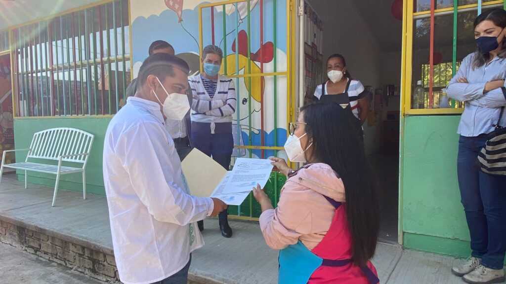 Primeramente, las autoridades visitaron el preescolar, Rosaura Zapata Cano, en la comunidad de El Aguacate y posteriormente, la primaria, Enrique C. Rebsamen, en cabecera municipal.