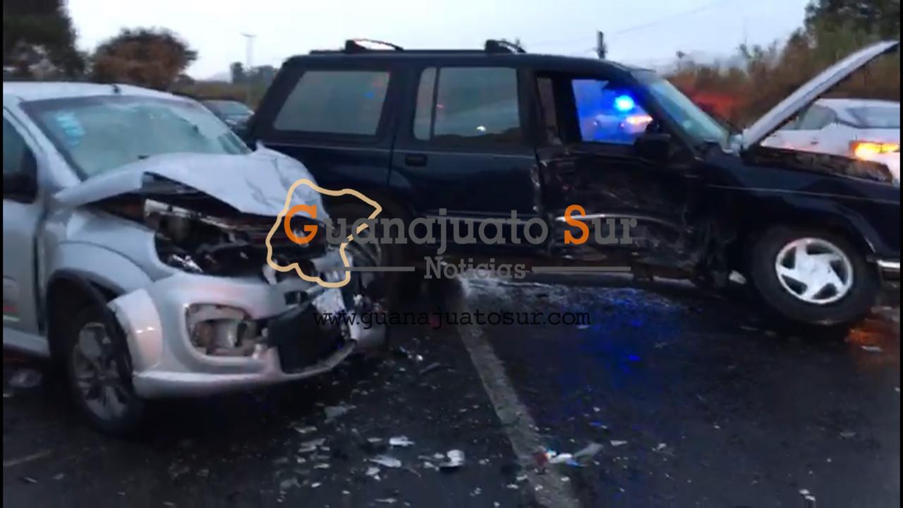 Se suscitó un accidente vehicular entre un automóvil de color gris con una camioneta color negro en la carretera Salvatierra – Yuriria exactamente en la entrada a la comunidad de Santo Tomás Huatzindeo, lugar mejor conocido como “El Chorro del Agua”, en el que ambos vehículos resultaron con graves daños materiales, al parecer resultaron dos personas lesionadas, un hombre y una mujer quienes fueron trasladados al hospital por parte de los paramédicos de Cruz Roja Mexicana y hasta el momento se reportan como estables.