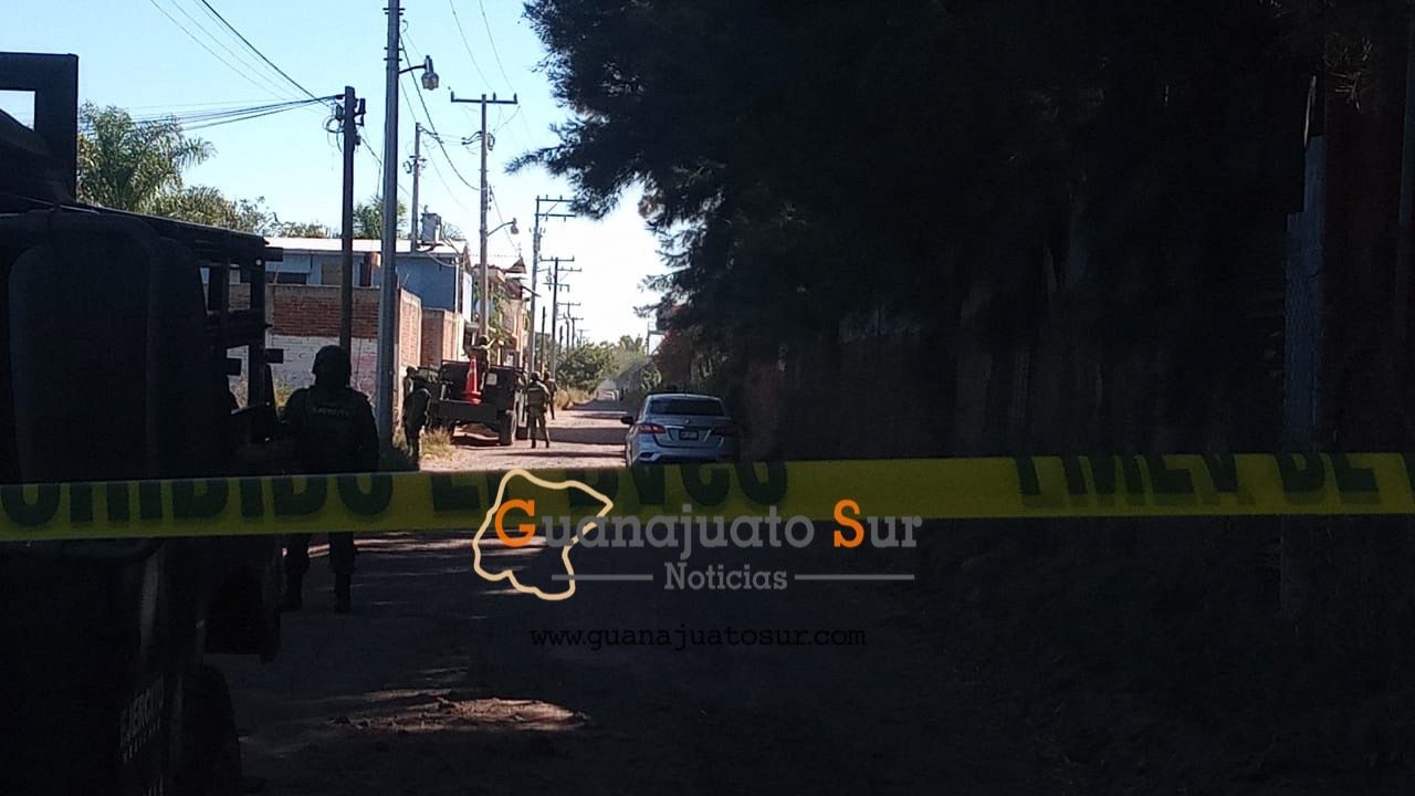 Fue en la calle Irapuato que divide a estos dos municipios que la víctima de identidad desconocida de apariencia joven quien vestía blusa a cuadros en color rojo y negro, pantalón de mezclilla color azul y tenis negros quedó boca abajo sin vida con lesiones de bala.