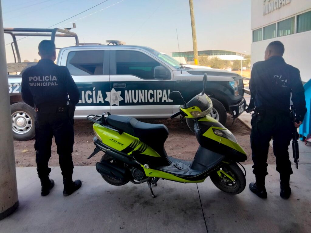La Policía Municipal detuvo a dos personas en posesión de una motocicleta con reporte de robo vigente cuando intentaban robar a una persona que se encontraba en la vía pública. Tras la detención, lograron frustrar el ilícito.