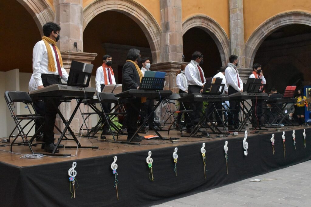 El grupo Representativo de teclados y un ensamble de percusiones, integrado por alumnos del taller ExpresArte, ofrecieron un recital navideño como parte de la posada organizada por la Dirección de Formación Artística, dirigida por la maestra Rosa María Rayón Saavedra.
