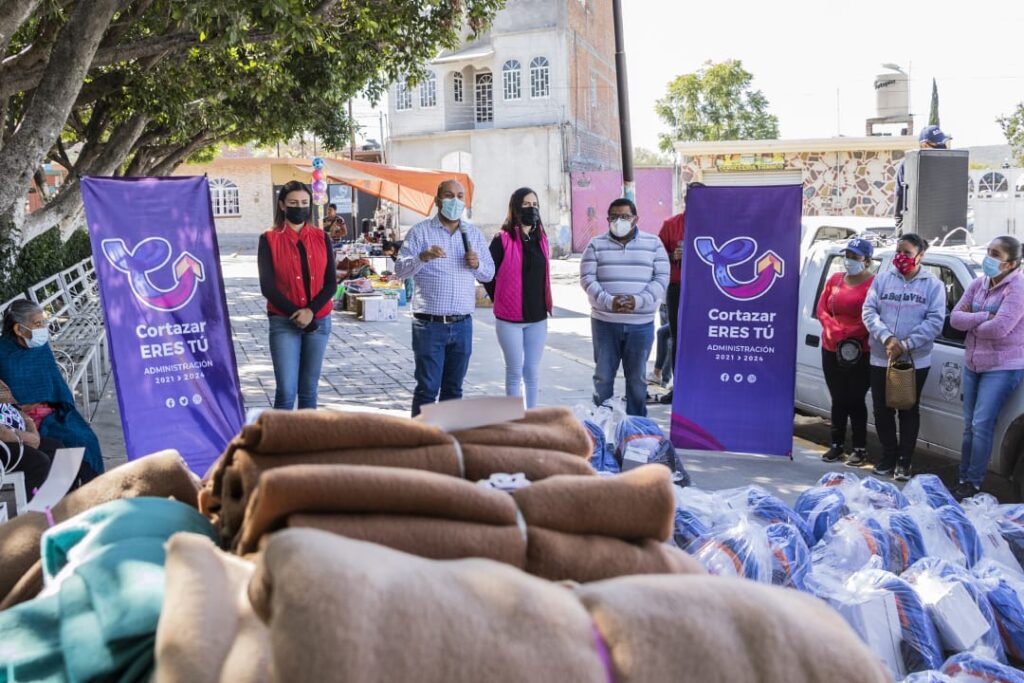 Para dar continuidad a la campaña invernal 2021 “Abrigando el Invierno”, autoridades municipales y personal de DIF acudieron a comunidades para que las familias vulnerables del municipio tengan un abrigo y con ello reducir las enfermedades respiratorias durante la temporada invernal.