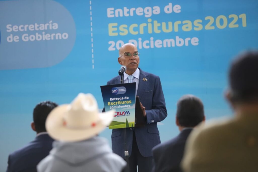 “Me da un gusto enorme estar participando hoy de esta entrega de escrituras porque se brinda certeza jurídica a 69 familias que a partir de hoy contarán con ‘su papelito’, y ‘papelito habla’. Sobre todo, ese papel lo necesitamos para tener completa nuestra vida: nuestra acta de nacimiento, nuestra credencial de elector y muy importante, nuestra escritura, es decir un papel que dice mi nombre y las medidas de la tierra de la que yo soy dueño, que dice y da fe de que este pedazo de Celaya me pertenece a mí”, dijo el alcalde, en su mensaje.