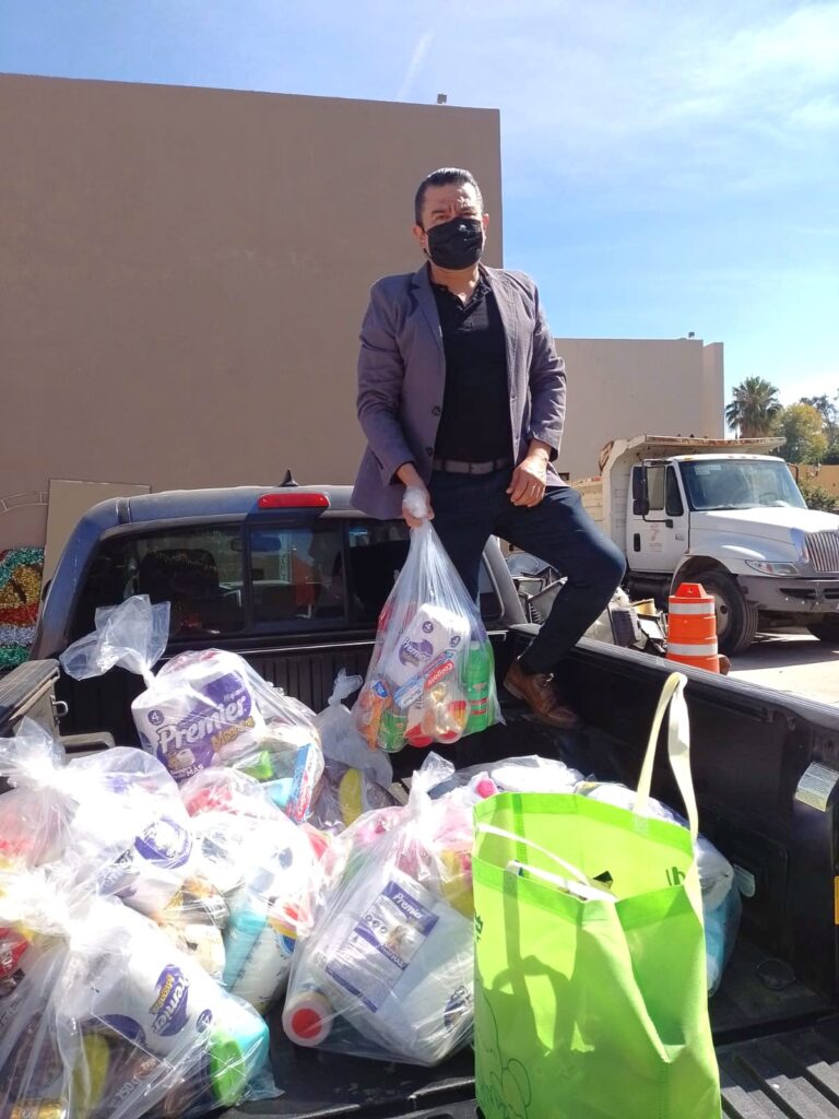 “Yo me encuentro dispuesto a apoyar a quienes lo necesiten, en esta ocasión, Comerciantes establecidos de la calle Ocampo se acercaron conmigo y tuvieron la intención y la voluntad de apoyar a los compañeros de Servicios Públicos municipales del área de limpieza, Me uní a su iniciativa y pudimos entregar un apoyo a los compañeros de servicios, mencionó Alejandro Lanuza.