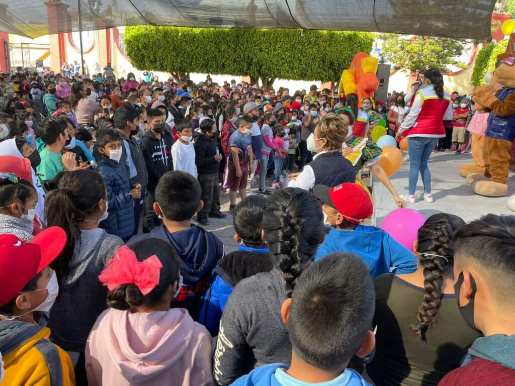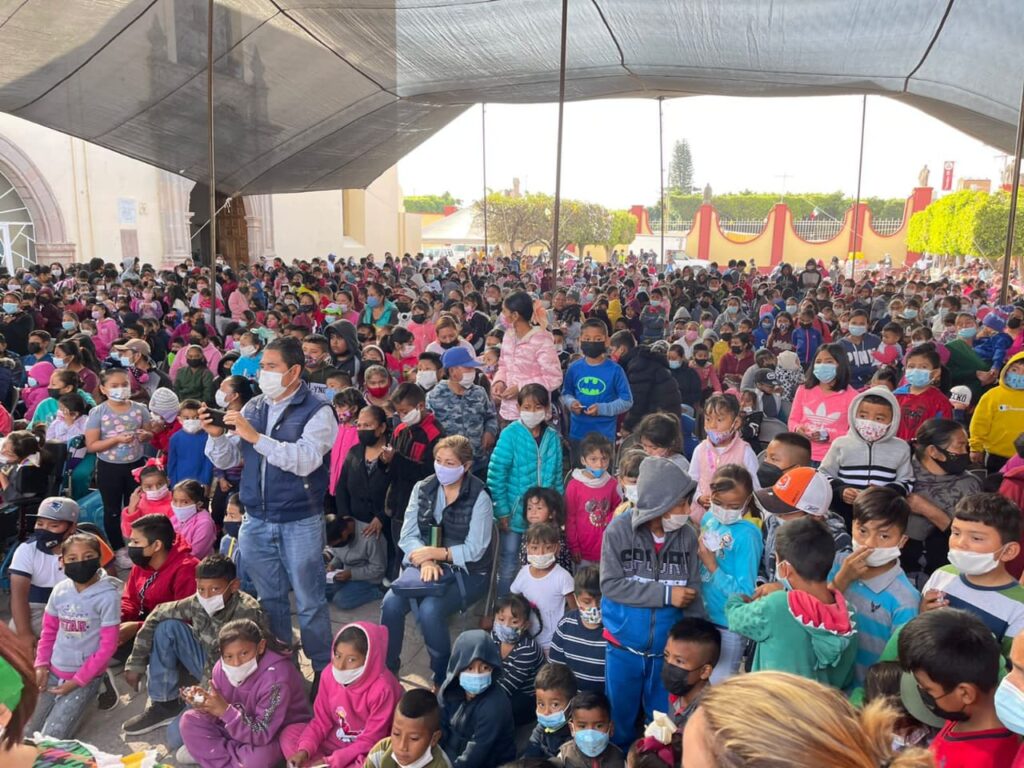 Cientos de niños y niñas llegaron en compañía de sus familias al atrio del templo principal de la comunidad para recibir sus regalos.